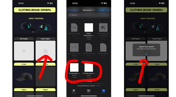Click on IMPORT PROJECT, choose the folder you downloaded, and select the 3D model. The import is successful once you see the confirmation in the app. After that, you can start using the 3D model
